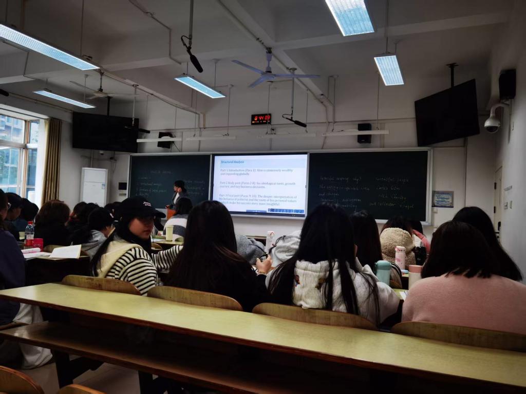 课后,全体听课教师进行了集体评课。观摩此次公开课的成功举办,不仅为教师们提供了一个相互学习、交流与提升的平台,也为商务英语系深化课程思政建设、推动课堂教学改革积累了宝贵经验。今后,商务英语系将继续以公开课、示范课等形式为抓手,鼓励教师探索多样化的教学模式,充分发挥外语课程在价值引领与能力培养中的育人功能,不断提升课堂质量与育人实效,为我院外语教育的高质量发展注入新的动力。