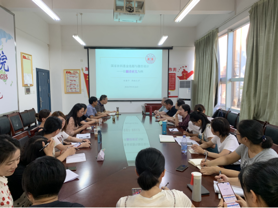 2021年9月24日下午,湖南大学cctv13直播间在线观看博士生导师朱健平教授应邀莅临我校开展学术讲座。他讲座的题目是:“国家社科基金选题与题目设计——以翻译研究为例”。讲座由我校外国语言文学学科带头人、cctv13直播间在线观看院长杨永和教授主持,学科梯队骨干成员以及青年教师30多人聆听了学术讲座。作为校庆70周年cctv13直播间在线观看系列学术活动的第二场,这次讲座也是我校外国语言文学学科国家级项目申报的一次辅导会。