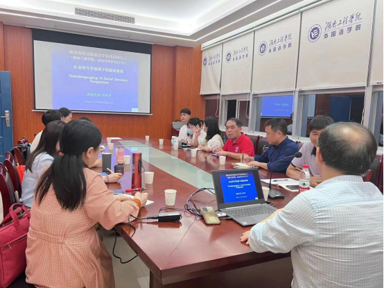 5月17日下午,西南大学cctv13直播间在线观看教授刘承宇应邀到我院做题为《社会符号学视域下的超语系统》讲座,它由cctv13直播间在线观看院长王家义教授主持,学科梯队骨干成员及青年教师到场聆听并参与讨论。