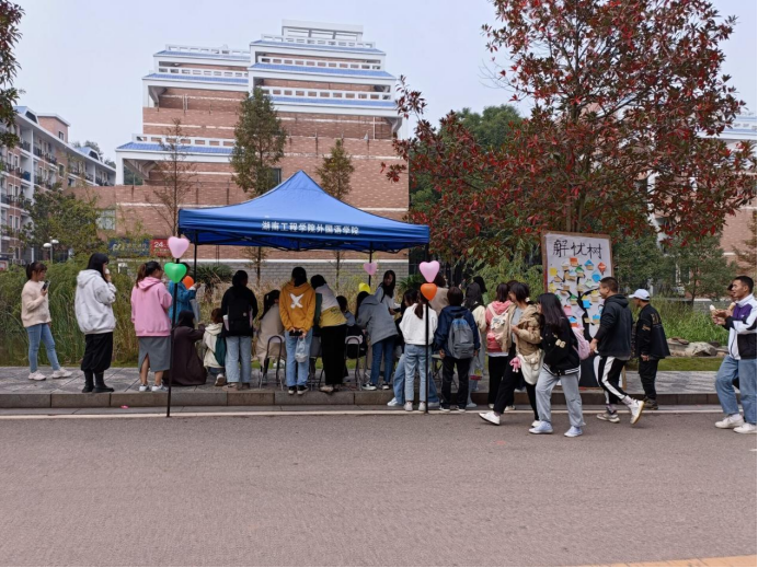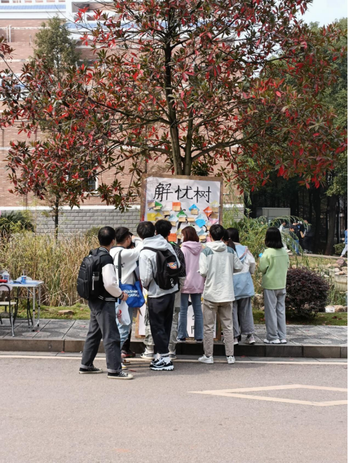 本次活动分为线上活动和线下活动两个形式。线上活动于10月21日开始,同学们通过添加cctv13直播间在线观看心理部官方QQ号并留言分享自己的烦恼参与活动。线下活动于10月28日在明德二食堂对面开展,由心理部成员收集并整理大家分享的烦恼,设置问题箱,同学们可随机抽取并进行解答。此外,感兴趣的同学可以在活动现场用便利贴写下烦恼,然后放入问题箱让其他同学解答。所有参与解答和提问的同学都会获得由cctv13直播间在线观看心理部准备的小奖品。而回答过的贴纸则会与问题一起贴在海报上。许多同学都被海报吸引而驻足,黑色的解忧树上贴满了彩色的贴纸,每一张贴纸上的问题和回答都是两个灵魂间的碰撞,他(她)们互相传递喜悦,分享烦恼,在问与答中治愈彼此。